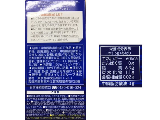 本商品は1本あたりMCT(中鎖脂肪酸油)を3g配合しています。