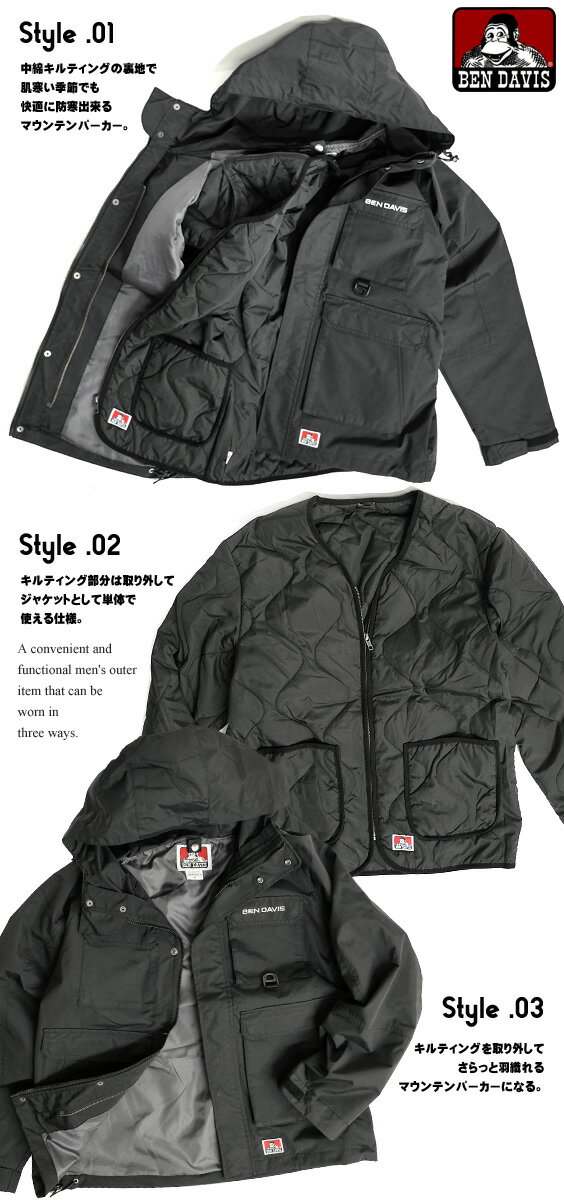 ■ 商品説明 BEN DAVIS 3WAY UTILITY PARKA ベンデイビスの3WAY仕様のマウンテンパーカー。