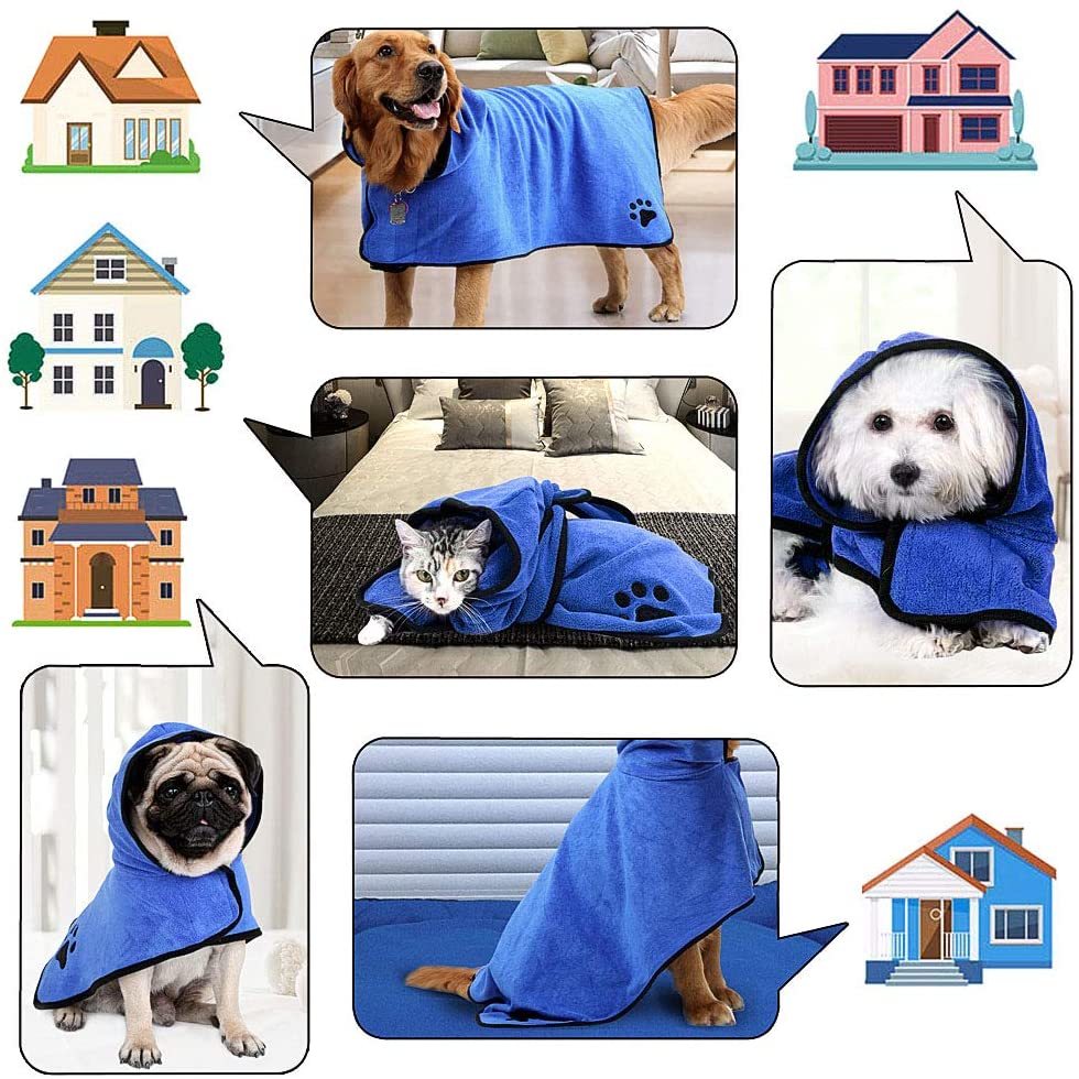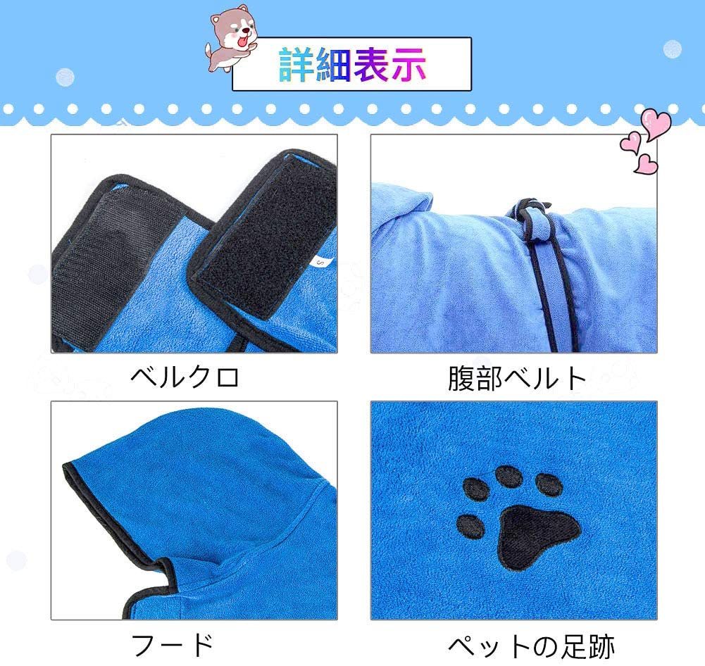 ペット用バスローブ 速乾ペットローブ 超吸水 ペット用タオル マイクロファイバー デザイン 犬 猫 体拭き 調整可 柔らかいタオル お風呂ローブ 小中大型犬猫 適用 (S M L)