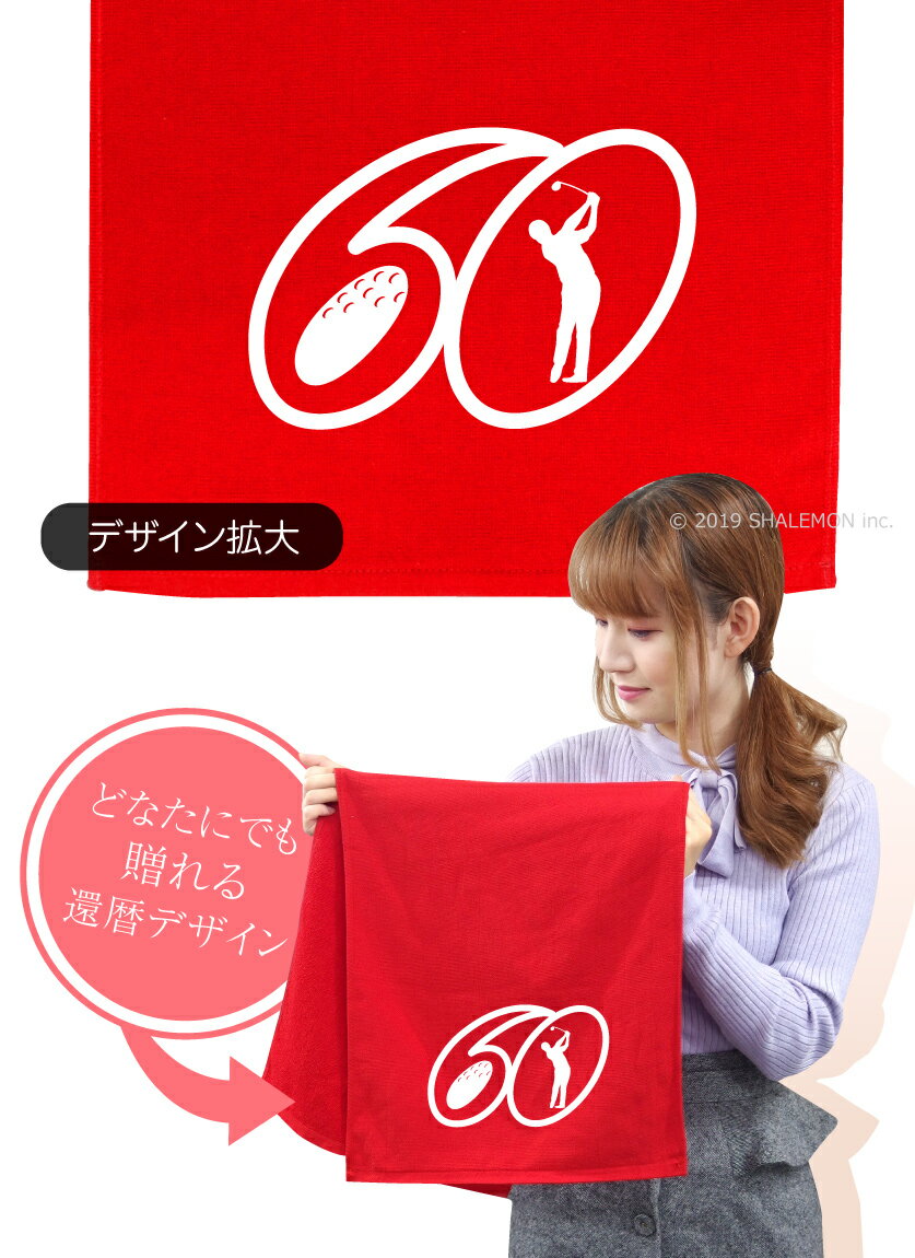 男女ともに使えるデザインの還暦祝い用タオルです。