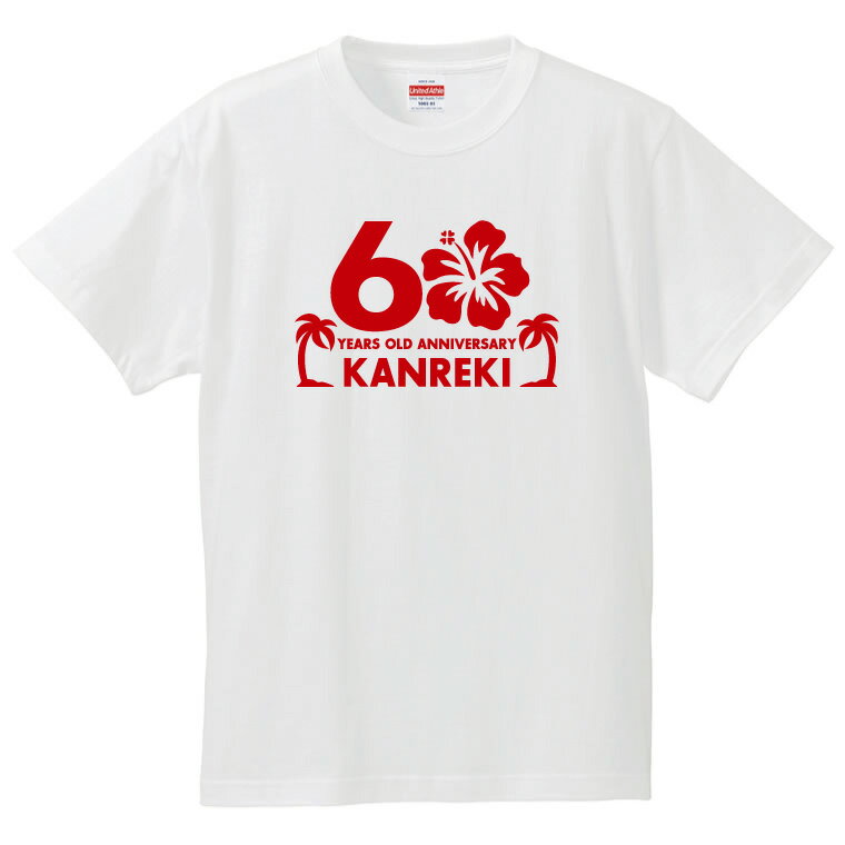 ホワイト/レッドプリント 左袖名入れします ご注文時、備考欄に名入れをご指示ください 素材:綿100% ・レディースサイズ ・大人サイズ と取り揃えておりますのでご本人様はもちろん ご親類、ご家族の方まで お揃いでご用意できます 還暦Tシャツ、還暦プレゼント、還暦ギフト 誕生日Tシャツ、還暦祝い、還暦パーティー【還暦祝いのTシャツです】 ★